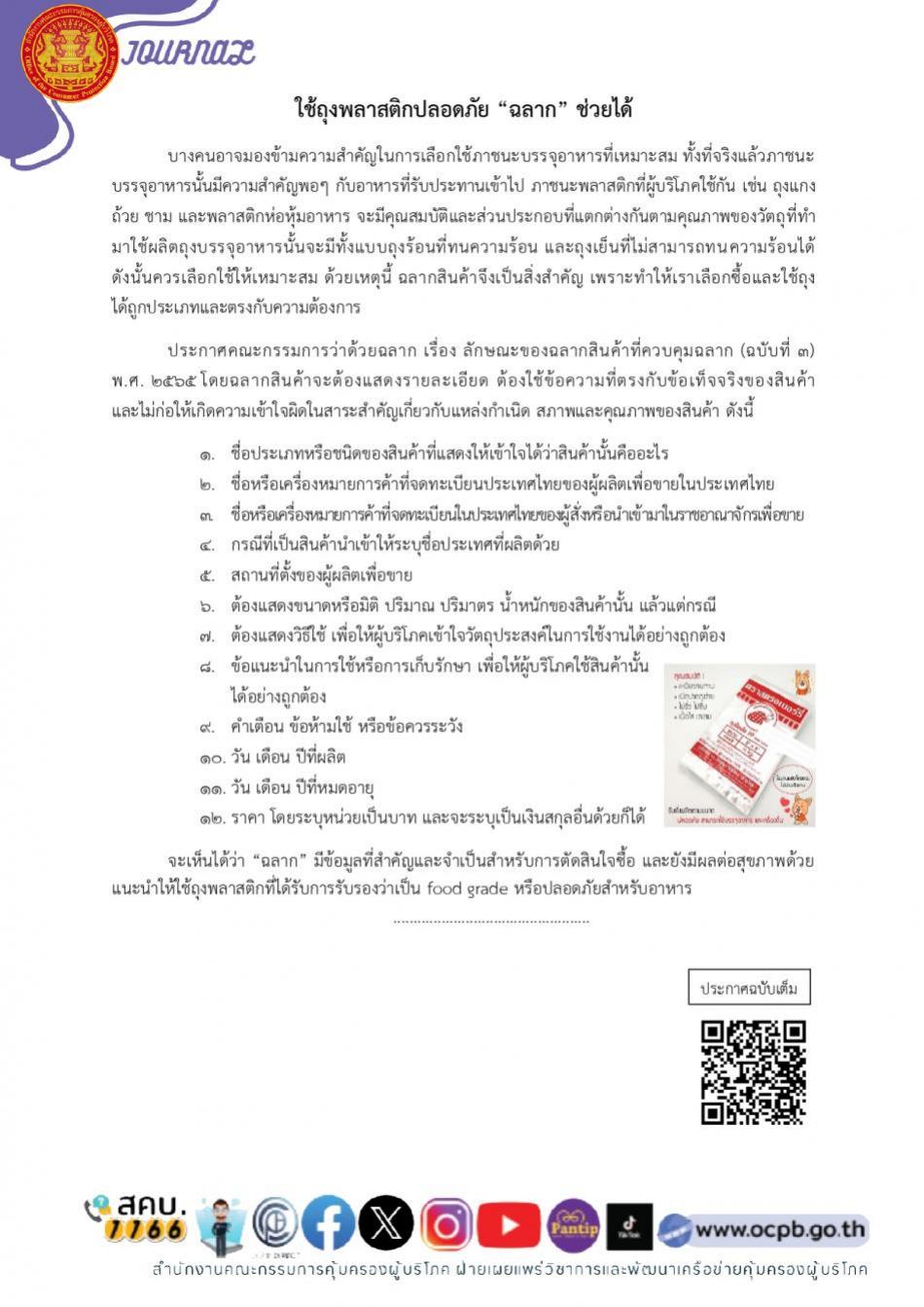 ใช้ถุงพลาสติกปลอดภัย “ฉลาก” ช่วยได้ [29 พฤษภาคม 2568]