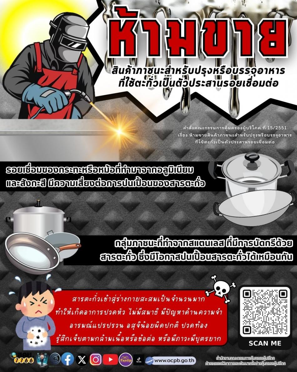 ห้ามขาย สินค้าภาชนะสำหรับปรุงหรือบรรจุอาหารที่ใช้ตะกั่วเป็นตัวประสานรอยเลื่อนเชื่อมต่อ [29 พฤษภาคม 2568]