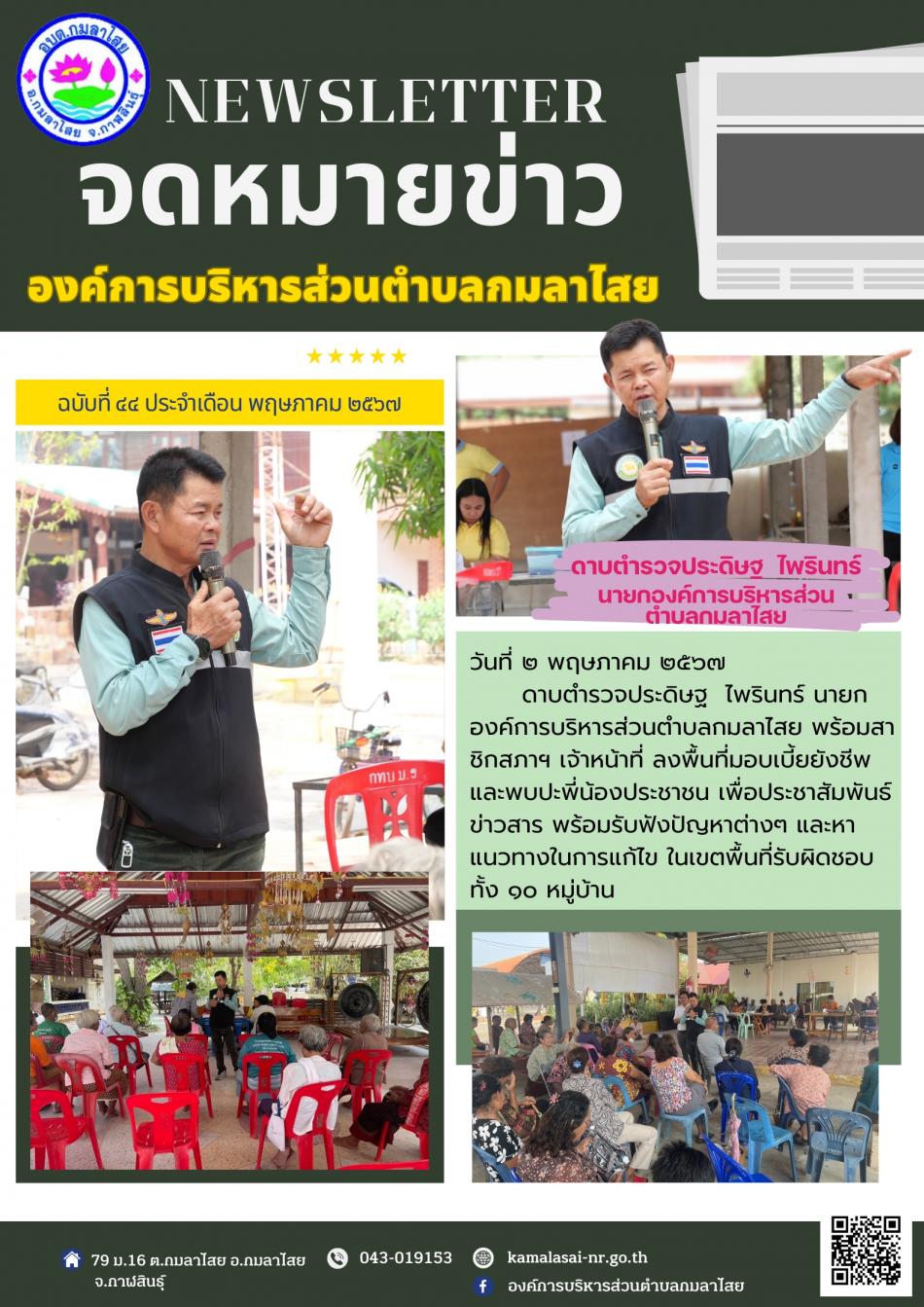 จดหมายข่าว ฉบับที่ 44/2567 ประจำเดือน พฤษภาคม 2567 จ่ายเบี้ยยังชีพ พร้อมพบปะพี่น้องประชาชน [2 พฤษภาคม 2567]
