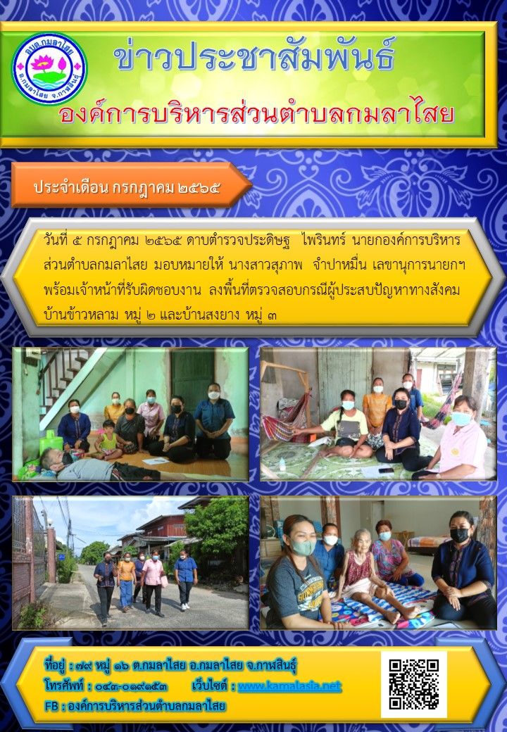 จดหมายข่าว ประจำเดือน กรกฎาคม 2565 ลงพื้นที่ตรวจสอบกรณีมีผู้ประสบปัญหาทางสังคม [5 กรกฎาคม 2565]