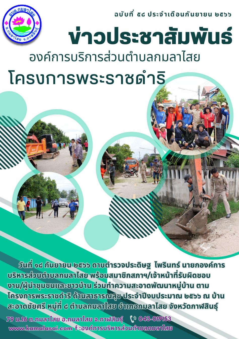 จดหมายข่าว ฉบับที่ 58/2566 ประจำเดือน กันยายน 2566 กิจกรรมโครงการพัฒนาระบบสุขาภิบาลในชุมชน ตามโครงการพระราชดำริด้านสาธารณสุข ประจำปี 2566 [18 กันยายน 2566]