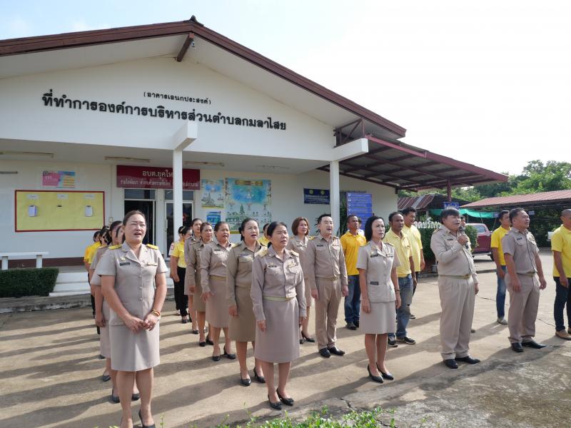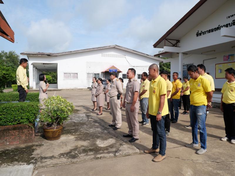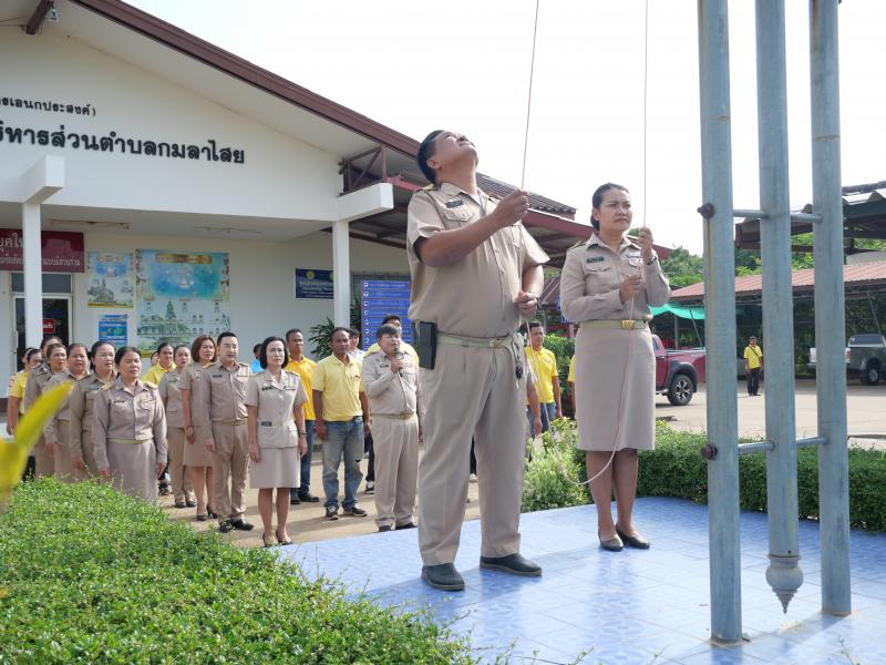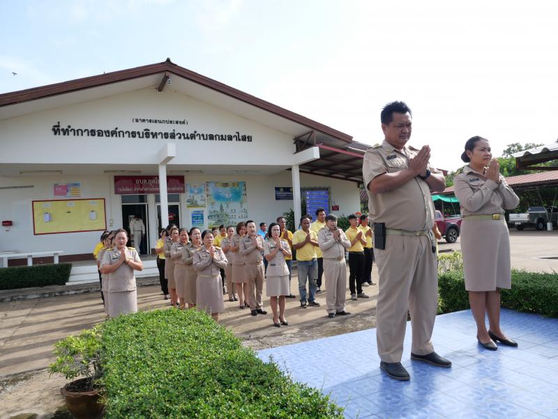 รายละเอียด : องค์การบริหารส่วนตำบลกมลาไสย จัดกิจกรรมเข้าแถวเคารพธง สวดมนต์ไหว้พระ และมอบหมายงาน ซึ่งจัดขึ้นทุกวันอังคาร เพื่อแสดงความจงรักภักดีต่อชาติ ศาสนา พระมหากษัตริย์ แสดงออกซึ่งวัฒนธรรมองค์กร รวมถึงเสริมสร้างความรัก ความสามัคคี ความสัมพันธ์อันดีซึ่งกันและกันให้เกิดในองค์กร โดยมี ดาบตำรวจประดิษฐ ไพรินทร์ นายกองค์การบริหารส่วนตำบลกมลาไสย พร้อมคณะผู้บริหาร ปลัดองค์การบริหารส่วนตำบล หัวหน้าส่วนราชการ พนักงานจ้าง เข้าร่วมกิจกรรม ณ บริเวณหน้าเสาธงองค์การบริหารส่วนตำบลกมลาไสย