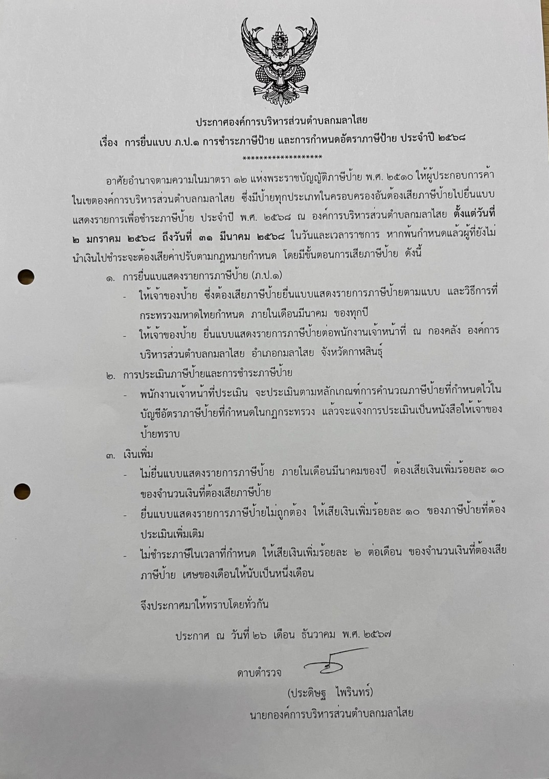 ประกาศยื่นแบบภาษีป้าย ภ.ป.1