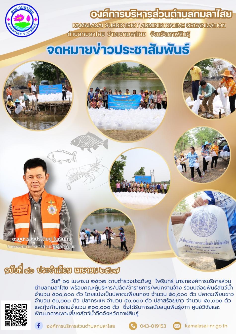 จดหมายข่าว ฉบับที่ 40/2567 ประจำเดือน พฤษภาคม 2567 กิจกรรมปล่อยพันธ์สัตว์น้ำ [11 เมษายน 2567]