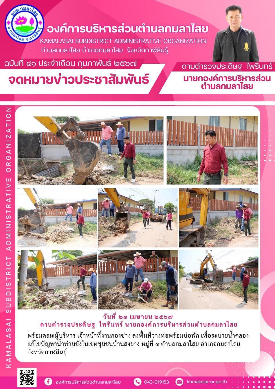 จดหมายข่าว ฉบับที่ 41/2567 ประจำเดือน พฤษภาคม 2567 แก้ไขปัญหาน้ำท่วมขังในเขตชุมชน [23 เมษายน 2567]
