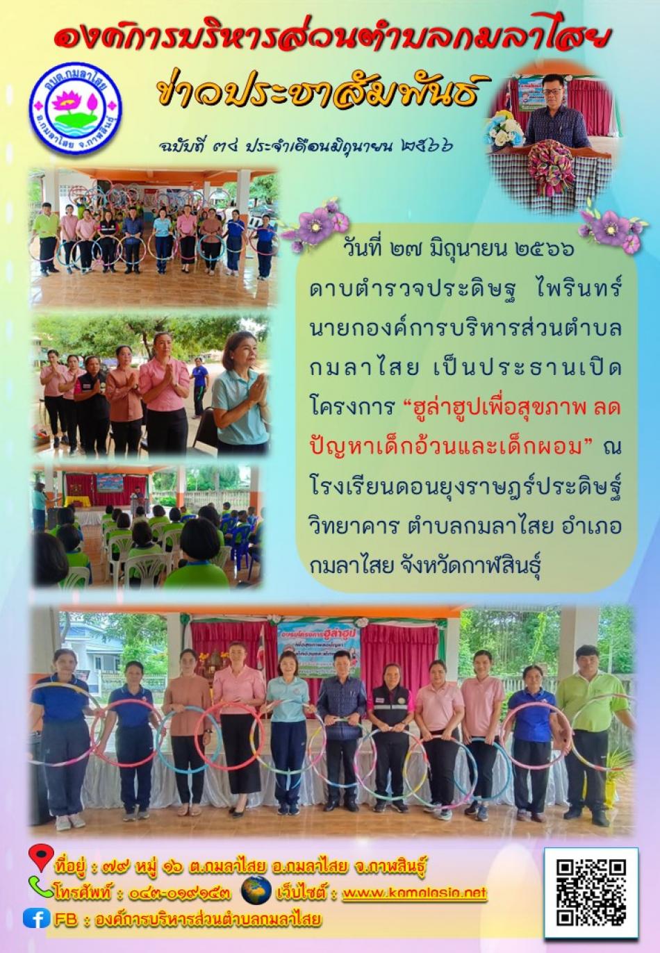 จดหมายข่าว ฉบับที่ 30/2566 ประจำเดือน มิถุนายน 2566 กิจกรรมโครงการชุมชนร่วมใจป้องกันภัยไข้เลือดออกและโรคติดต่อที่เป็นปัญหาในท้องถิ่น บ้านดอนยูง ได้รับสนับสนุนงบประมาณจากกองทุนหลักประกันสุขภาพ อบต.กมลาไสย [15 มิถุนายน 2566]